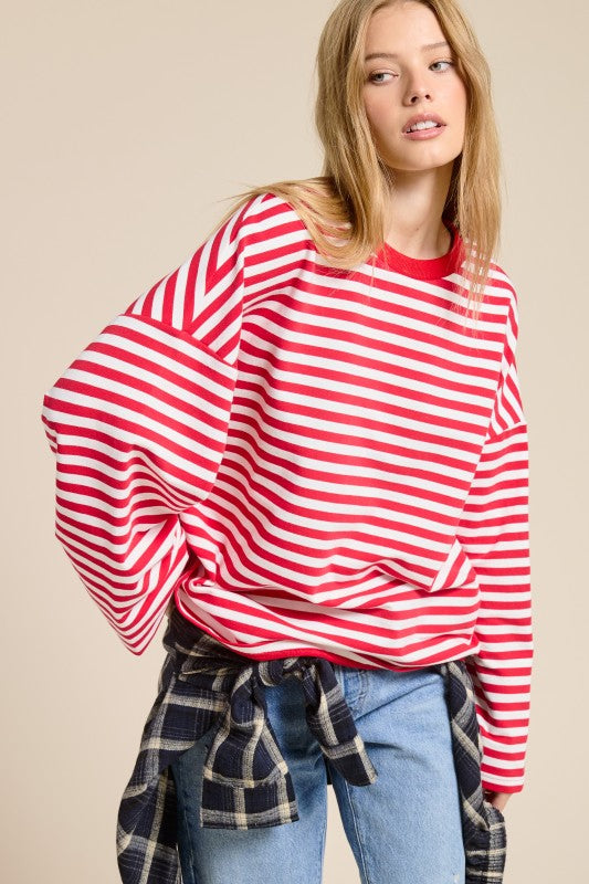 Stripes never go out of style, and this terry top proves it! Soft, comfortable, and effortlessly chic, it's the perfect layering piece for any season. Whether you're dressing it up or keeping it casual, this striped essential works with everything in your closet. Grab yours and get ready to turn heads with timeless style.