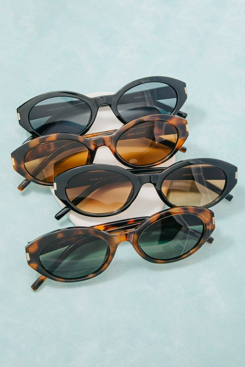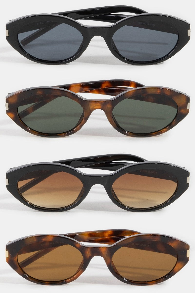 Metallic accent oval acetate sunglasses