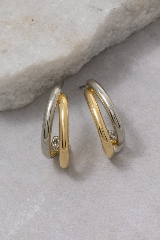 Gold Dipped Two Tone Layered Hoop Earrings