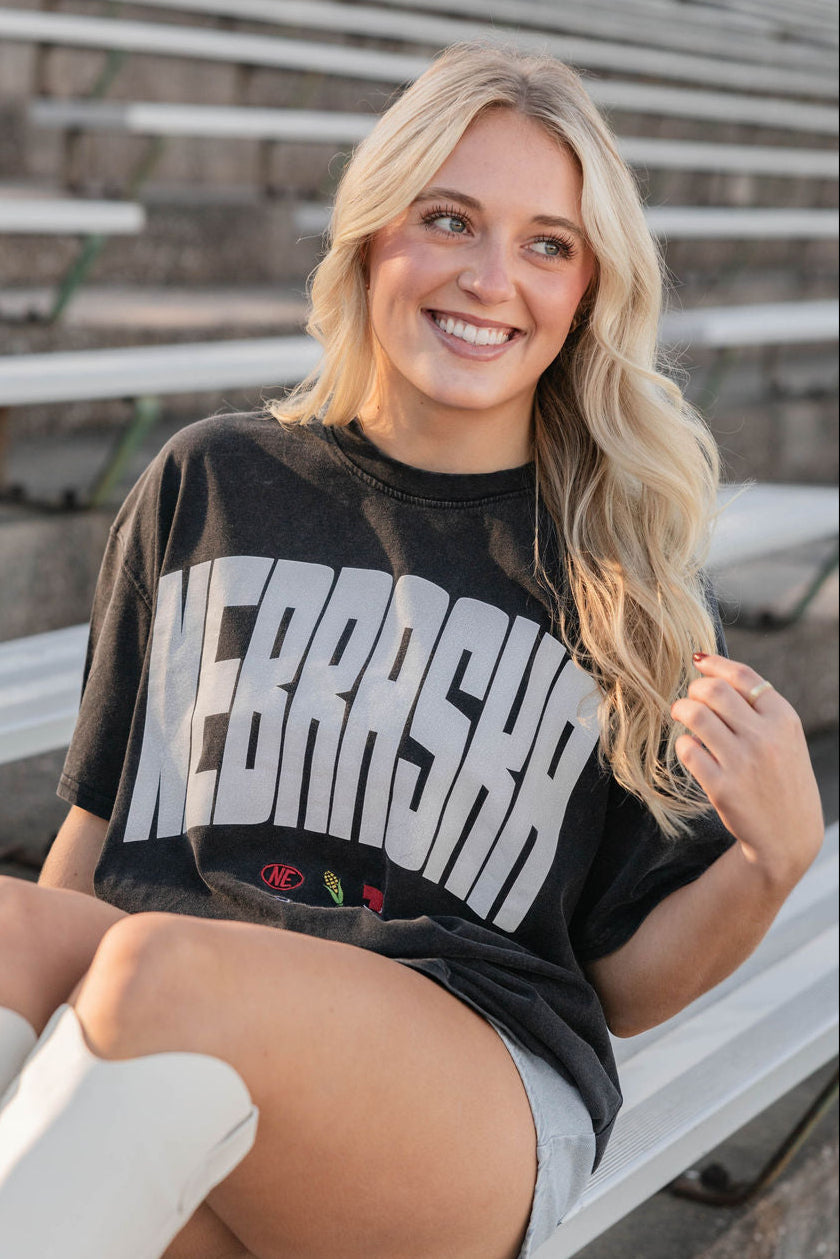 Turn heads and blackout the competition with the Blackout Nebraska Tee! This playful, sleek black tee is perfect for showing off your Nebraska pride while keeping things cool and casual. Whether you're at the game or just out and about, this tee brings bold fun to your everyday style.