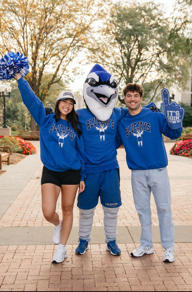 Show your Bluejays pride in cozy style with the Creighton Bluejays Mascot Sweatshirt! Perfect for cheering on game day or lounging around, this soft sweatshirt features your favorite mascot’s vibrant design to keep your spirit soaring. Stay cute, comfy, and ready to rally with every wear!