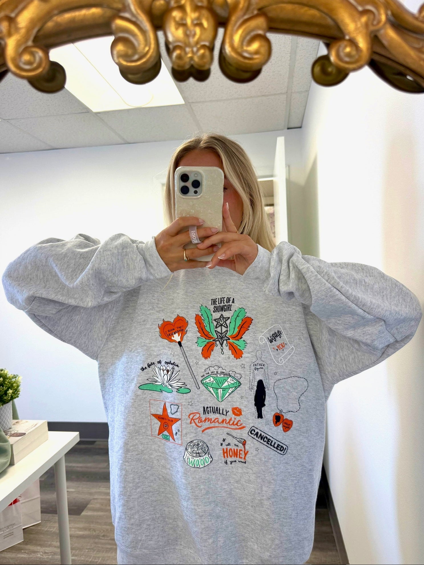 Inspired by Taylor Swift's newest album 'The Life Of A Showgirl'- this cute and cozy crewneck is just perfect for all of our Swifties out there! This FSB exclusive makes the most perfect gift just in time for the holiday season!