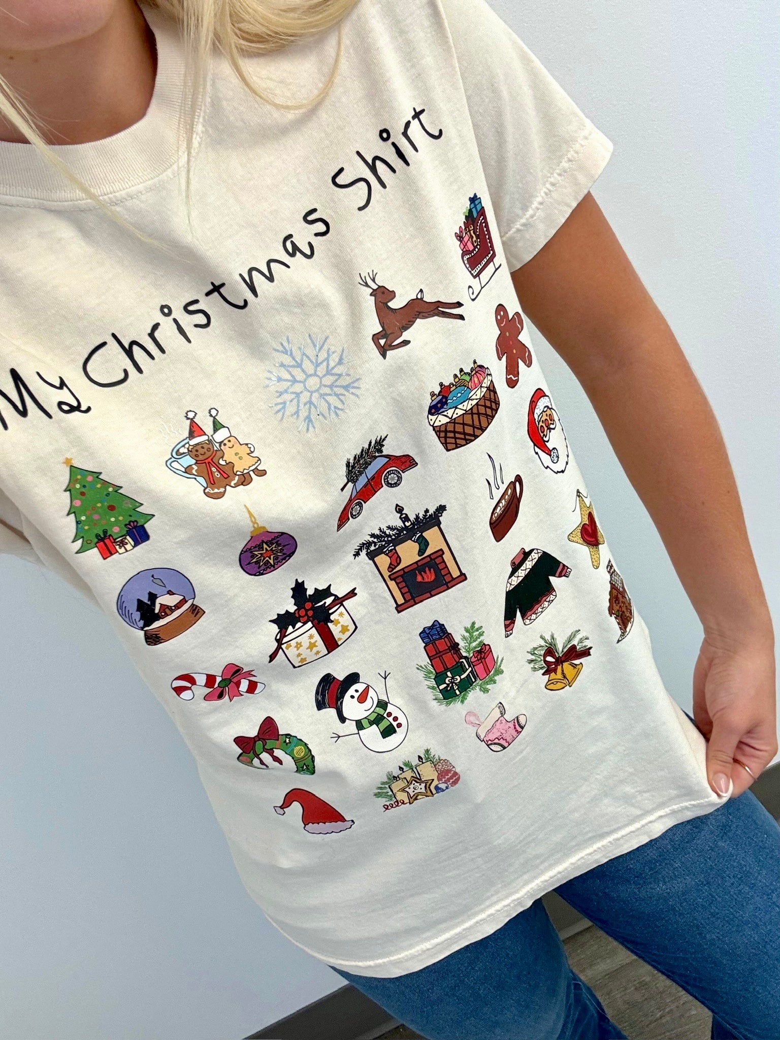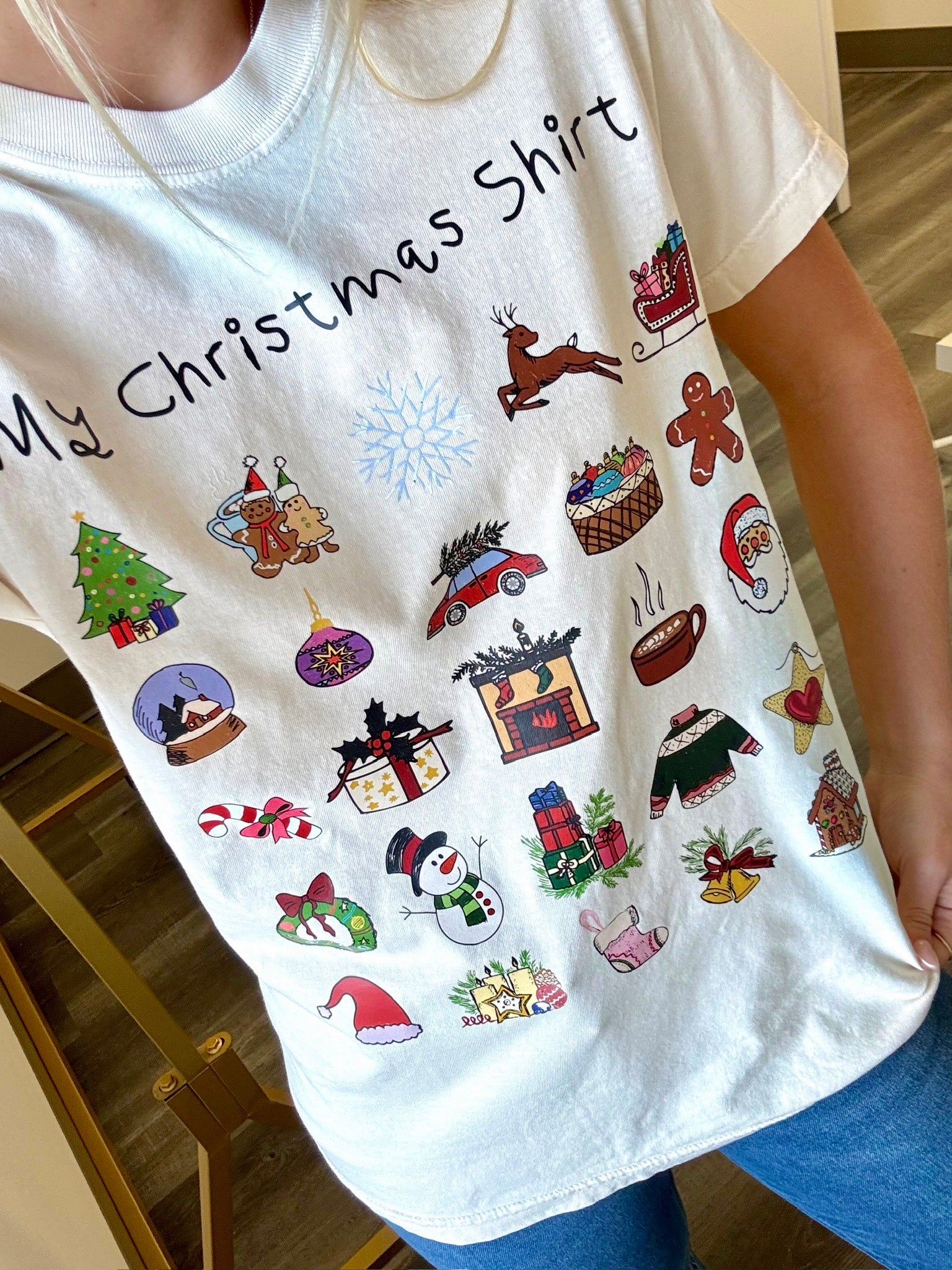 Spread holiday cheer with this fun graphic tee that's perfect for festive gatherings and casual celebrations. Featuring a playful Christmas design, it's the ideal way to show off your seasonal spirit without taking yourself too seriously. Soft, comfortable, and ready to become a holiday favorite, this shirt pairs effortlessly with jeans, leggings, or your favorite bottoms. Whether you're heading to a party, decorating the tree, or just embracing the holiday season, this graphic tee delivers style and personality in one cute and cozy package.