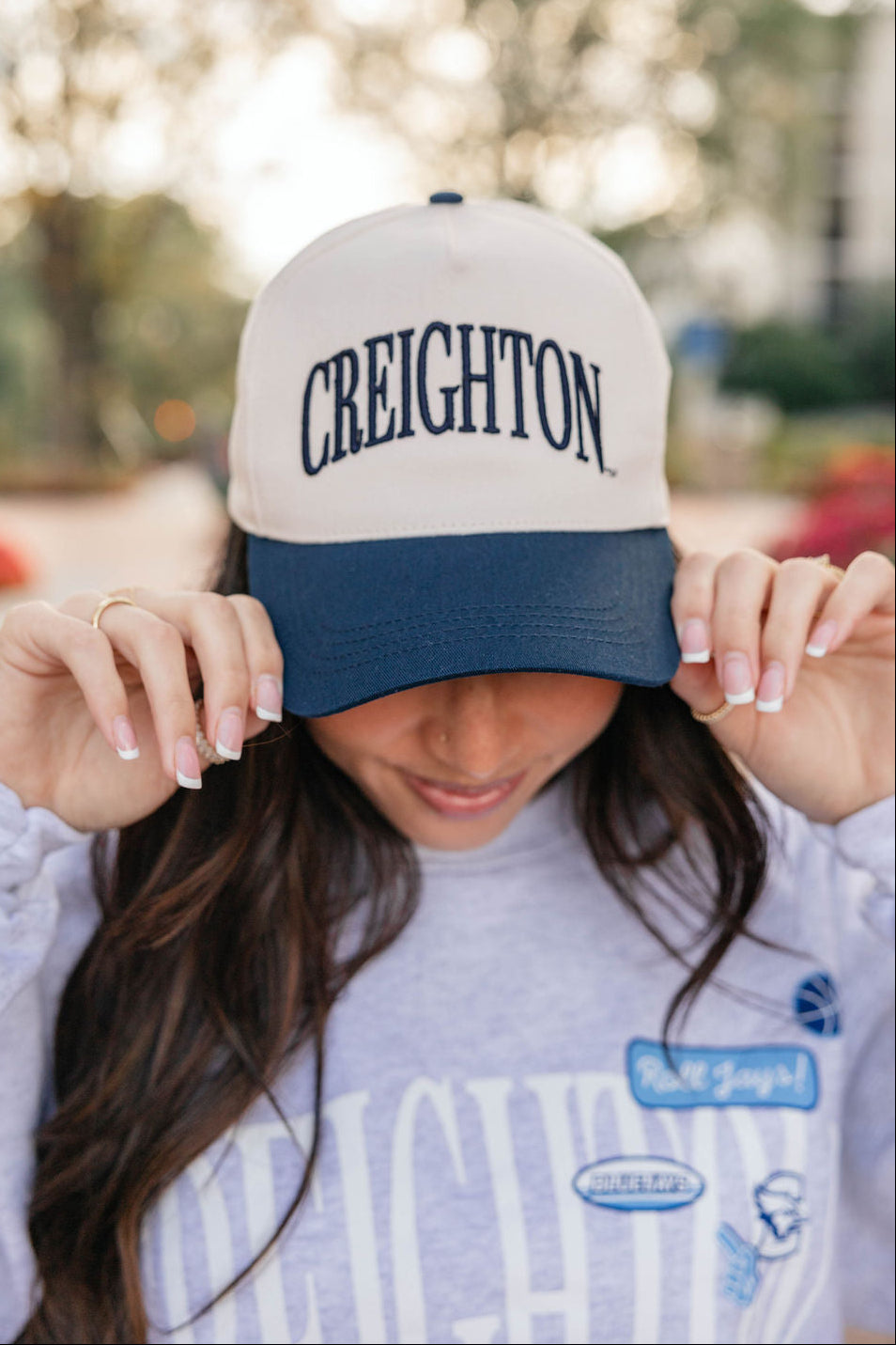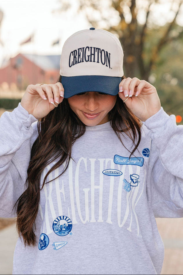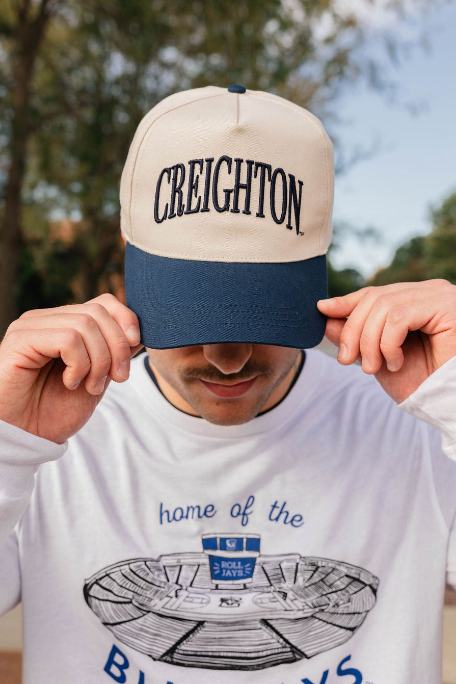 Score style points with the Navy Creighton Hat, perfect for game day and beyond! Its rich navy color keeps you cool and shaded, while adding a playful pop to your look. Whether you're cheering courtside or just out and about, this hat is your new MVP for fun and fashion.