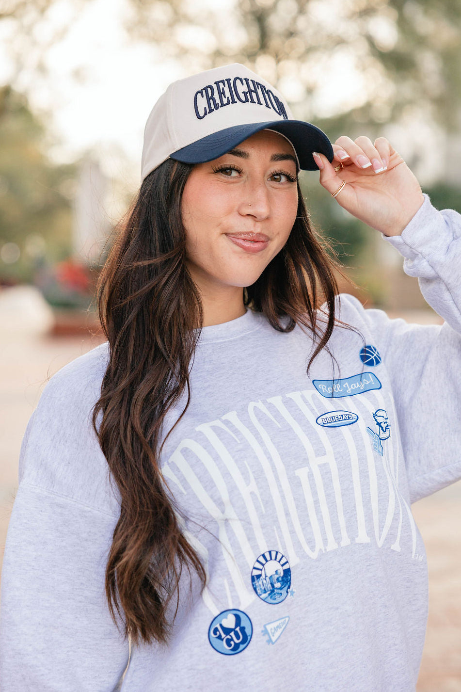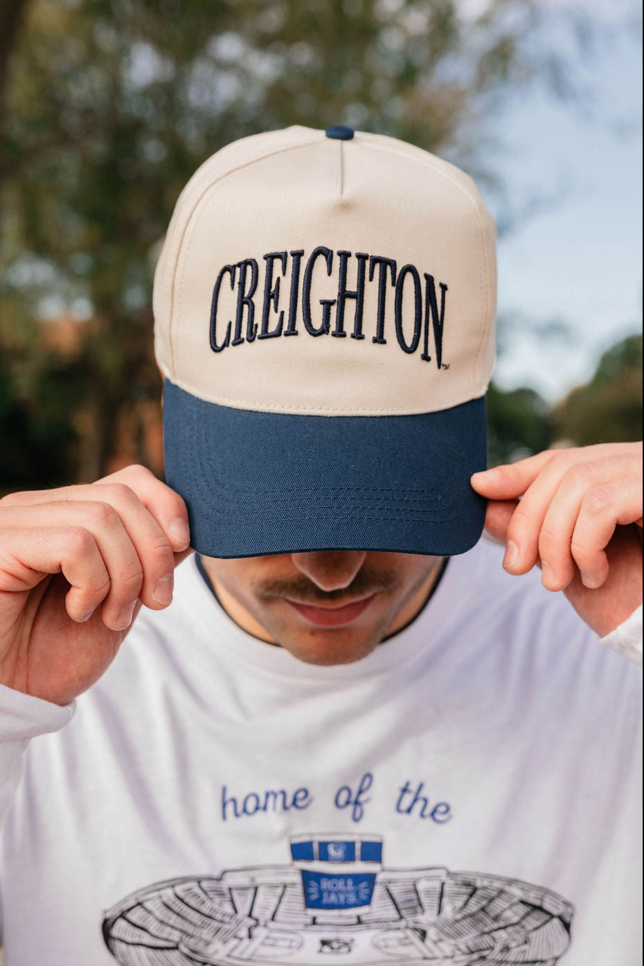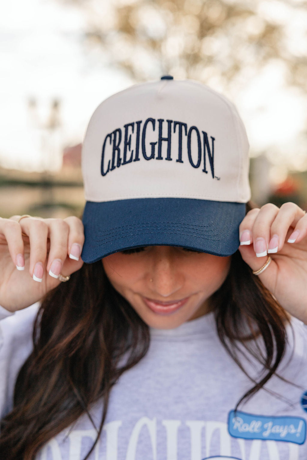 Score style points with the Navy Creighton Hat, perfect for game day and beyond! Its rich navy color keeps you cool and shaded, while adding a playful pop to your look. Whether you're cheering courtside or just out and about, this hat is your new MVP for fun and fashion.