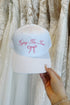 For your rowdy bridesmaids! This pink trucker hat goes perfectly with the brides "getting hitched" trucker and makes the perfect bachelorette accessory.