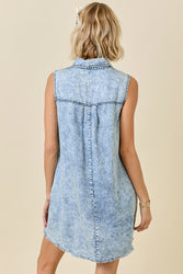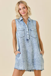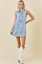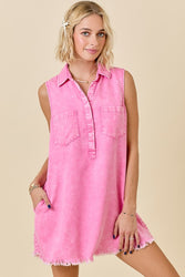 Our new Spring In My Step Mini Dress comes in two must have colors- denim and pink! This new arrival features a collared v-neckline, a button closure, pockets, and a raw hem. Perfect for a casual spring look!