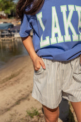 Our new Tommy Striped Shorts are an absolute must have for the spring and summer seasons! These shorts feature an elastic high rise waistband and side pockets. Pair these with any graphic or basic tee! Available in light blue.