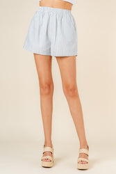 Our new Tommy Striped Shorts are an absolute must have for the spring and summer seasons! These shorts feature an elastic high rise waistband and side pockets. Pair these with any graphic or basic tee! Available in light blue.