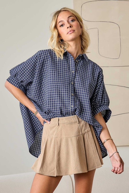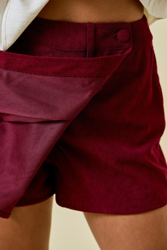 Our new Class Corduroy Mini Skirt is available in two must have colors- taupe and maroon! This new arrival features a high rise waistband, a pleated wrap front, a button closure, and back pockets. Perfect for the upcoming fall season!