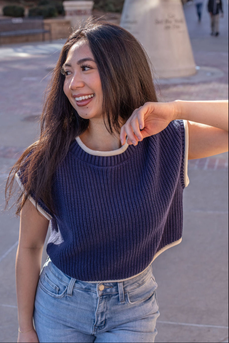 Our new Keegan Knit Top is the perfect staple piece to take into fall! This new arrival features a knit material, contrast detailing, and a boxy fit. Wear it alone or layer it under your favorite jacket! Available in black, ivory, navy, taupe, brown, and red.