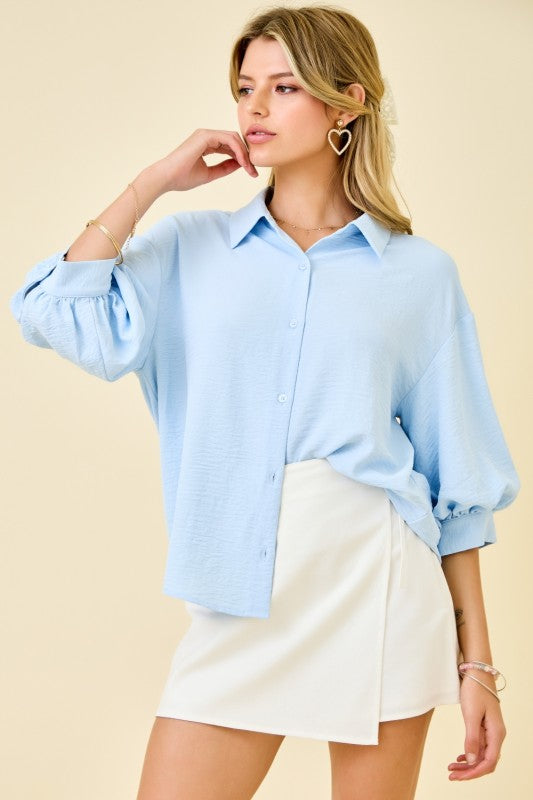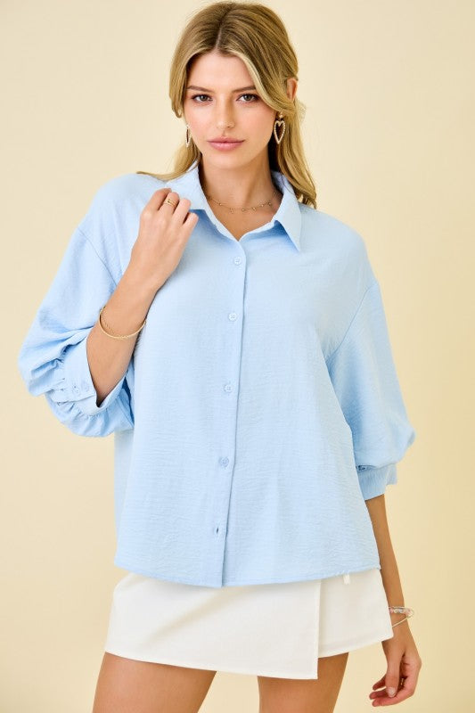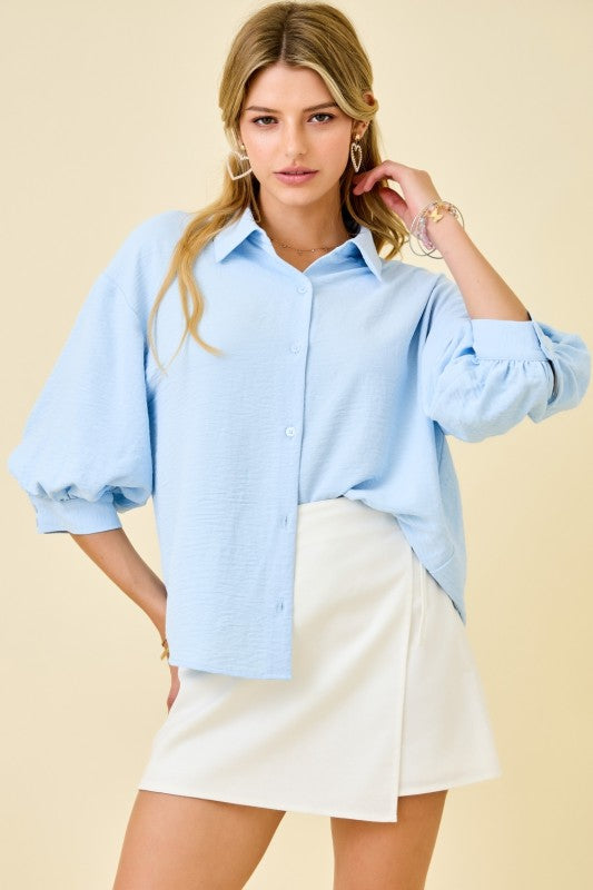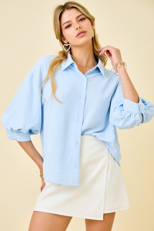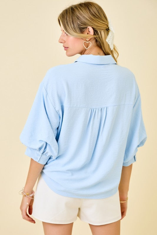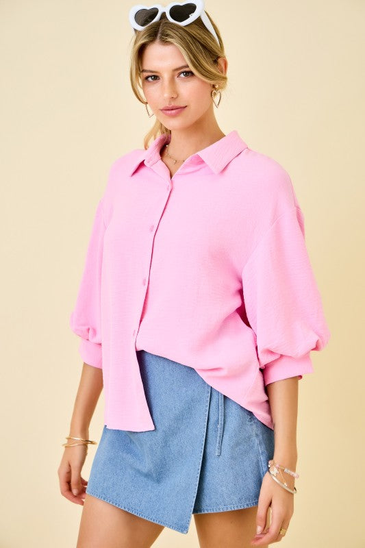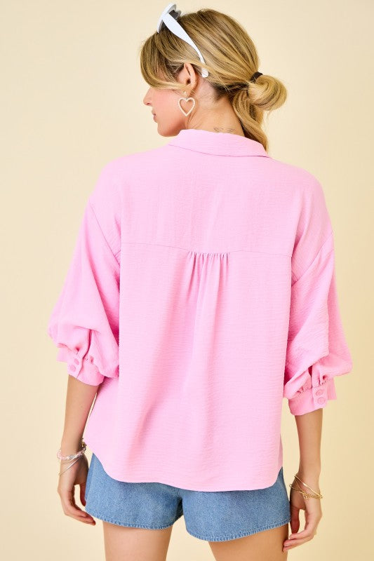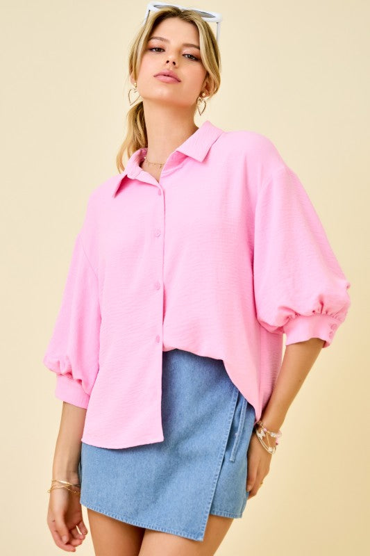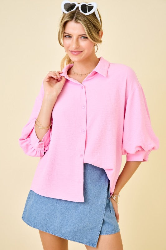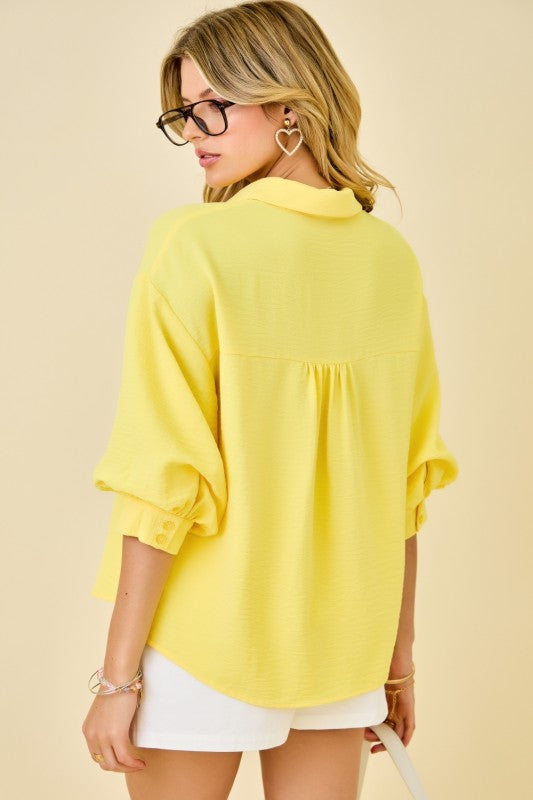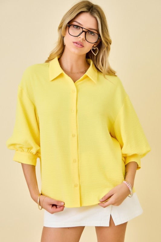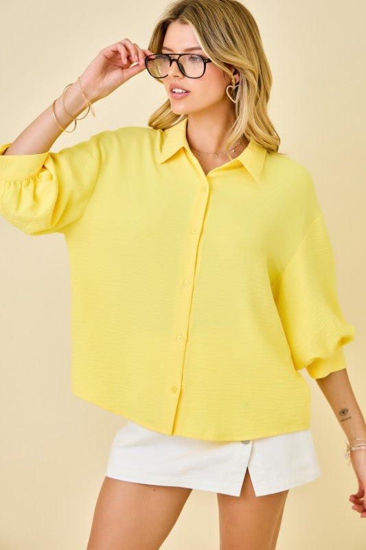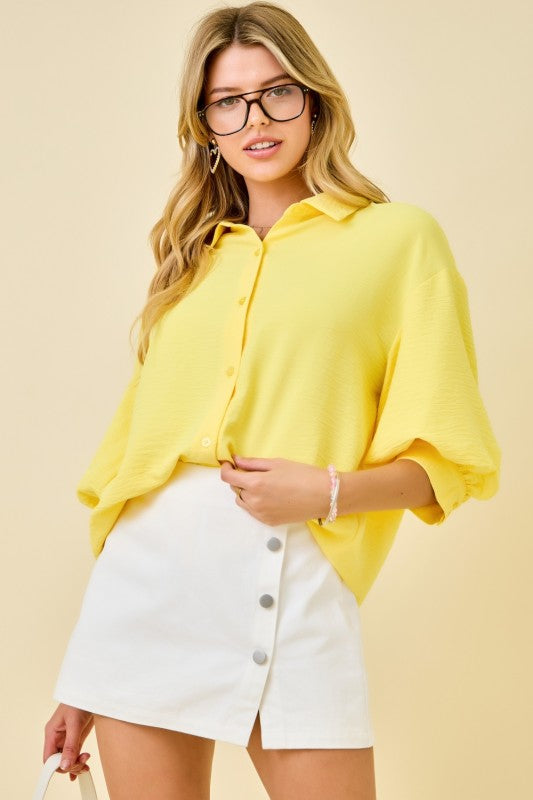 Embrace positivity with the Bright Side Button Top, a cheerful essential designed to lift your everyday style. Featuring a classic button-front closure and a flattering silhouette, this versatile piece pairs effortlessly with jeans, skirts, or trousers. The soft, breathable fabric keeps you comfortable all day long, while the timeless design ensures you'll reach for it season after season. Perfect for casual outings or layering under your favorite sweater. A wardrobe staple that brings sunshine to any outfit.
