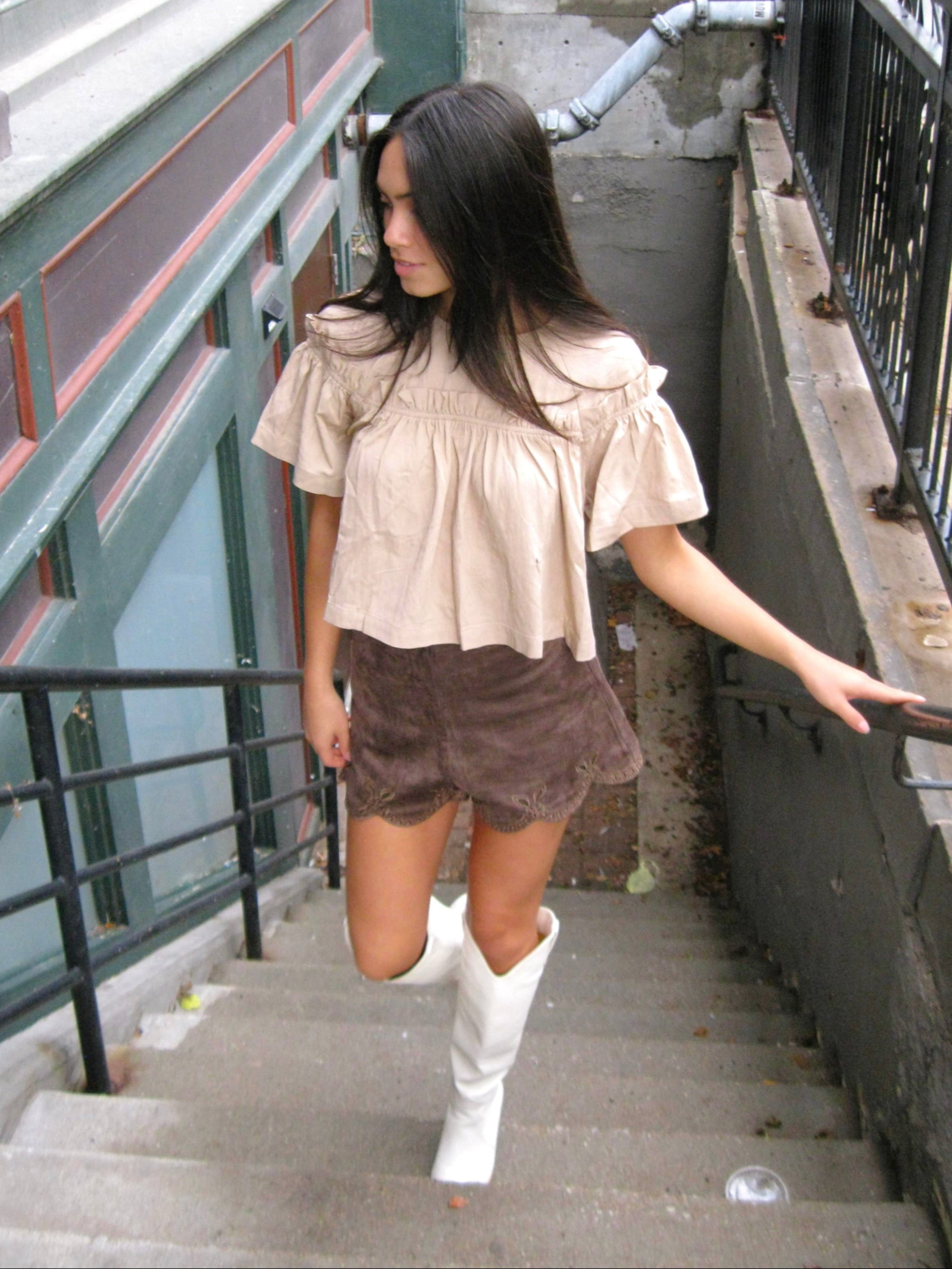 Our new Southern Suede Shorts are available in two must have colors- brown and camel! These shorts feature a high rise elastic waistband, a zipper/button closure, and an embroidered scallop hem. Perfect for the upcoming fall season!