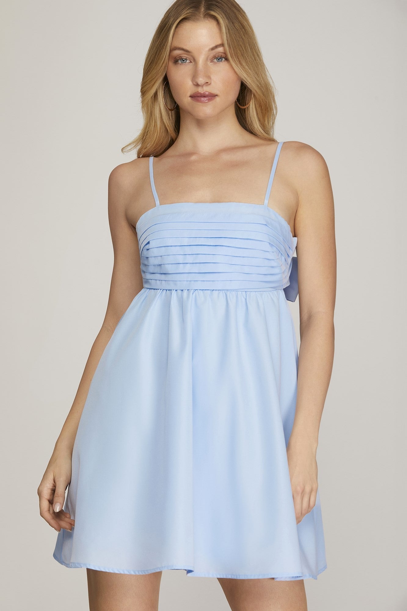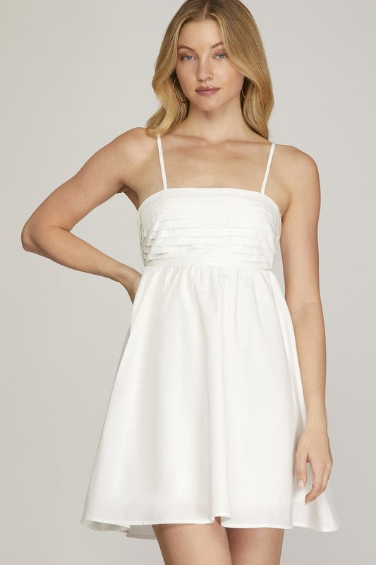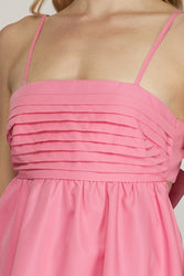 Our new Sweet Tooth Mini Dress comes in three must have colors- light blue, pink, and ivory! This new arrival features a pleated bodice, cami adjustable straps, and a cut out tie back. Dress this one up or down!