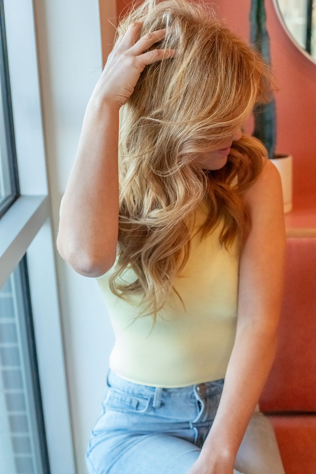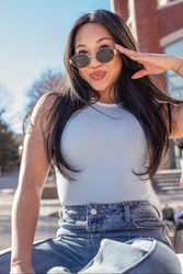 Our new Secret Admirer Bodysuit is now available in taupe, green, fuchsia, light blue, and yellow! This bodysuit pairs perfectly with any denim and can be worn all year round! Features a ribbed knit material, a high neckline, and a thong button with a snap button closure.