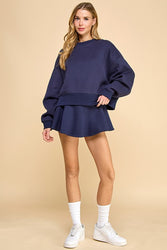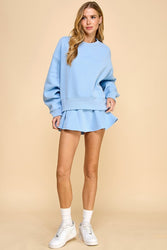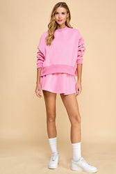 Mix and match your favorite pieces with this new matching lounge set! Our new Staying In Sweatshirt pairs perfectly with our Staying In Shorts or Staying In Sweatpants! Features a round neckline, long sleeves, and a relaxed fit. Available in light blue, pink, red, cream, mocha, and navy.